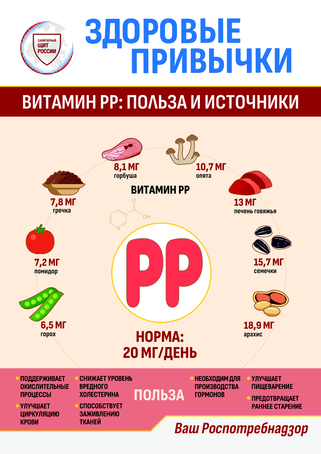 ЗДОРОВЫЕ ПРИВЫЧКИ. ВИТАМИН РР: ПОЛЬЗА И ИСТОЧНИКИ
